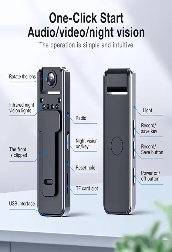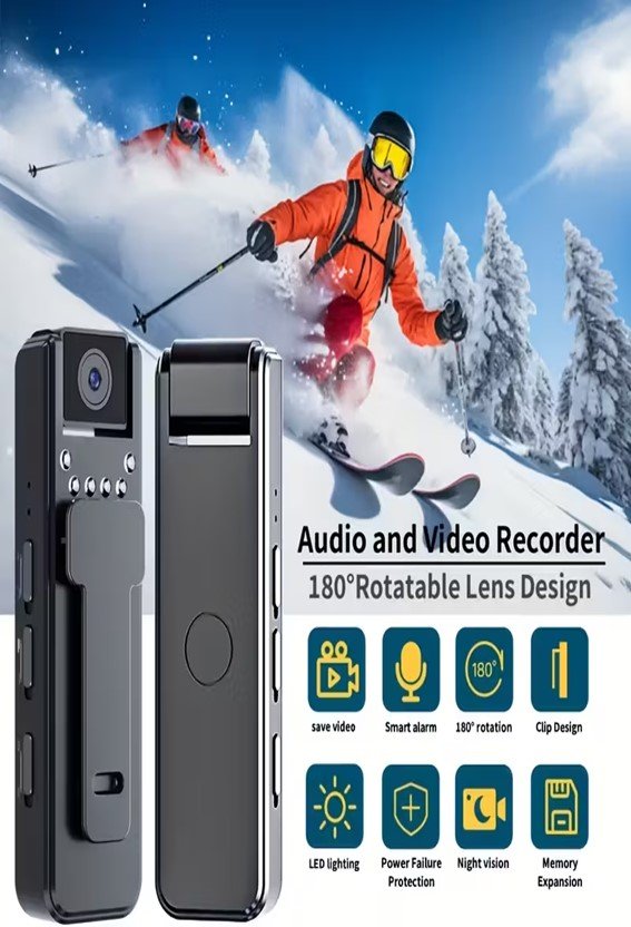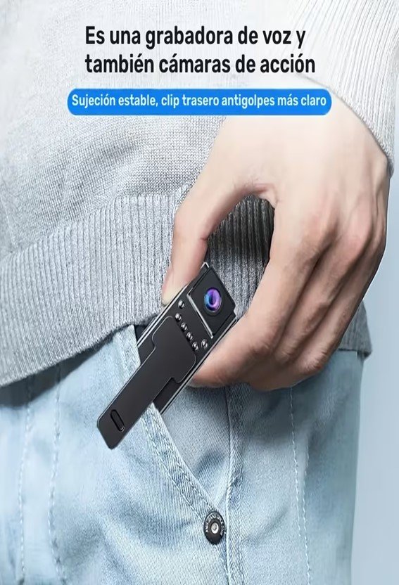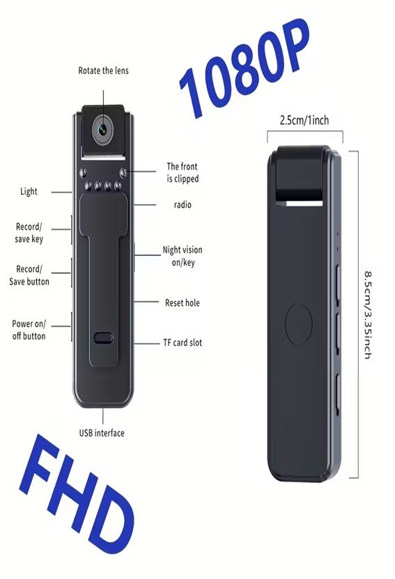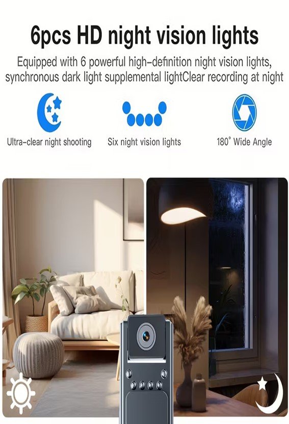 Mini cámara Sycees 1080P, pantalla HD 1080P ultra nítida, ángulo ultra gran angular, rotación de 180 grados, compatible con grabación de visión nocturna, detección de movimiento, visión nocturna por infrarrojos, carga USB, resolución 1080P, función de grabación de audio y vídeo, adecuada paraB (Sin Tarjeta)