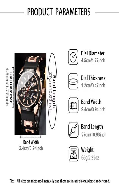 Juego de 2 piezas, nuevo reloj de pulsera de cuarzo con calendario, de moda, casual y para exteriores, reloj de hombre de precisión, correa de silicona, a pilas, movimiento electrónico, pantalla analógica – Reloj de moda multifuncional, ideal para actividades al aire libre