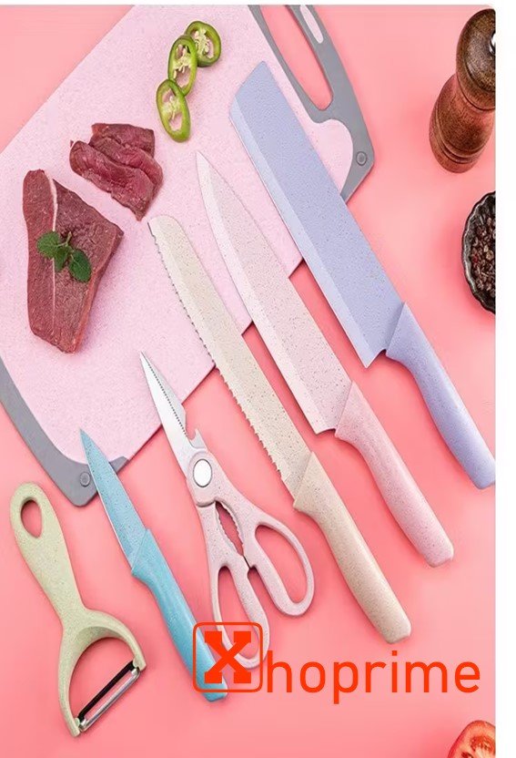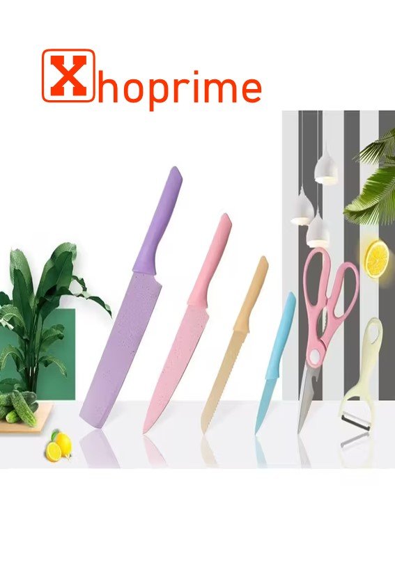 Paquete de 6 cuchillos de cocina con revestimiento antiadherente – Diseño colorido y afilado – Perfecto para cocina, camping, viajes – Seguro y duradero